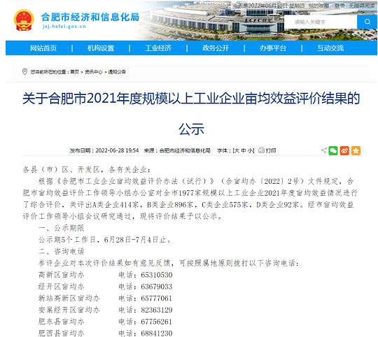 不以規(guī)模定標(biāo)準(zhǔn),而以“畝均論英雄”。近日,根據(jù)《合肥市工業(yè)企業(yè)畝均效益評(píng)價(jià)辦法(試行)》(合畝均辦〔2022〕2號(hào))文件規(guī)定,合肥市畝均效益評(píng)價(jià)工作領(lǐng)導(dǎo)小組辦公室對(duì)全市1977家規(guī)模以上工業(yè)企業(yè)2021年度畝均效益情況進(jìn)行了綜合評(píng)價(jià),共評(píng)出A類(lèi)企業(yè)414家,B類(lèi)企業(yè)896家,C類(lèi)企業(yè)575家,D類(lèi)企業(yè)92家。經(jīng)市畝均效益評(píng)價(jià)工作領(lǐng)導(dǎo)小組會(huì)議研究通過(guò),將評(píng)價(jià)結(jié)果予以公示。安徽世綠環(huán)保科技有限公司在此次綜合評(píng)價(jià)中,被評(píng)為A級(jí)。