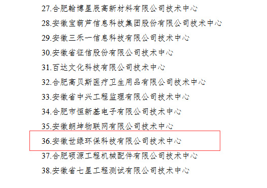 安徽世綠環(huán)??萍加邢薰救脒x2022年合肥市企業(yè)技術(shù)中心擬認(rèn)定名單