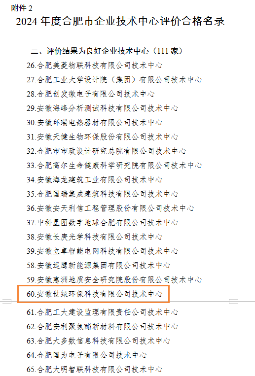 安徽世綠環(huán)??萍加邢薰炯夹g(shù)中心通過評價